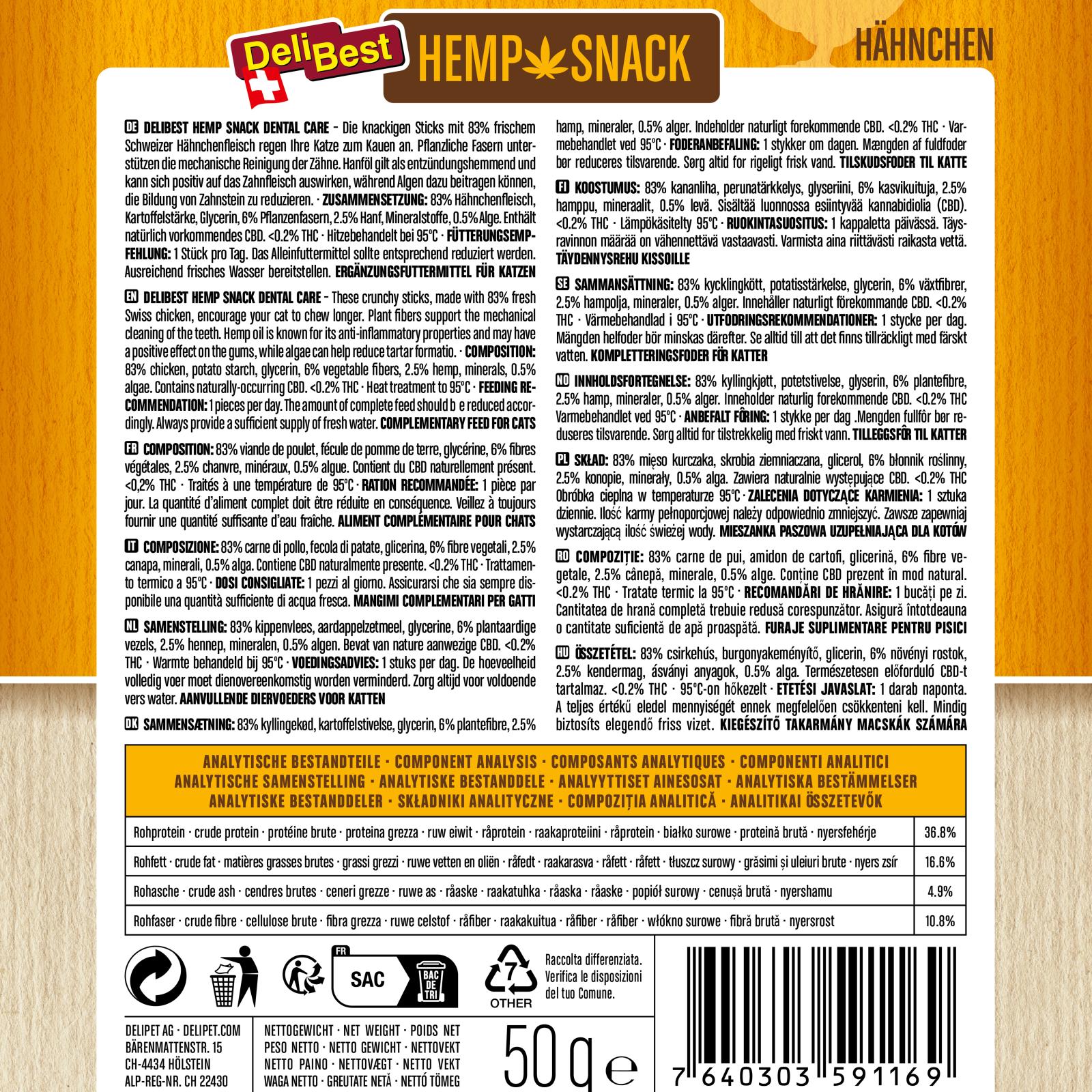 Angereichert mit 80% Schweizer Hähnchenfleisch und Hanf, bieten unsere Snacks vielfältige Vorteile. Relax Streifen